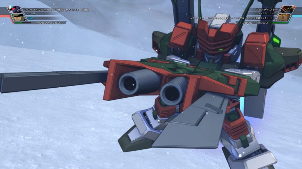 戦闘の舞台は雪山。ファントムペインの3機はゲスト参戦し、ザフト軍のバクゥやザクと交戦。