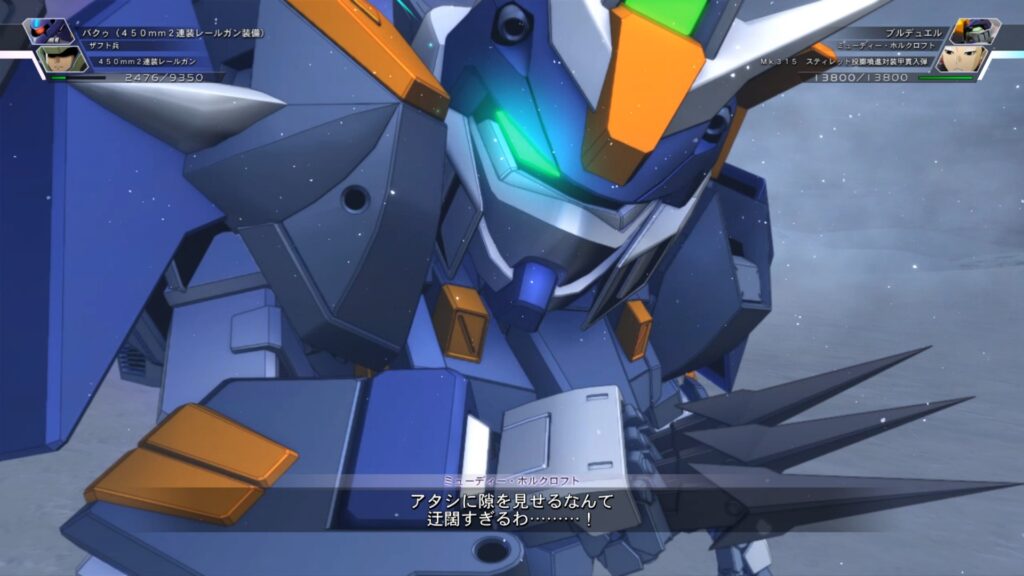 戦闘中のイベントで、ブルデュエルのミューディーが撃墜されてしまい、ゲストは2人に。