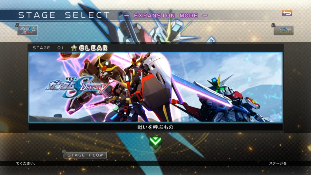 『ガンダムSEED DESTINY』第1シナリオ「戦いを呼ぶもの」。