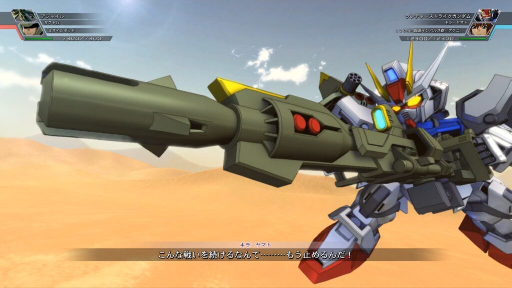 バクゥを規定数撃破すると、バルトフェルドがラゴゥで登場。キラとムウの連携で撃破を目指しましょう。